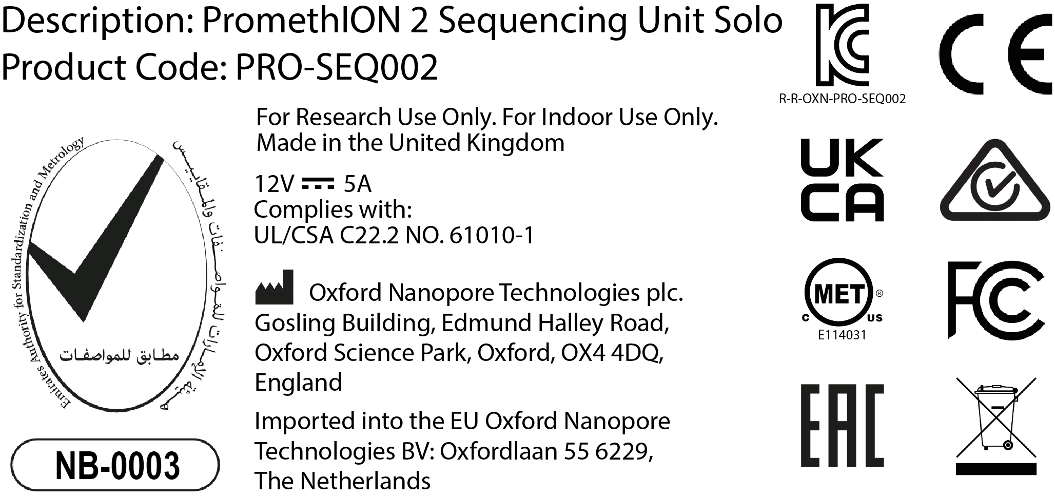 PromethION 2 Solo 已通过以下国际标准的认证: